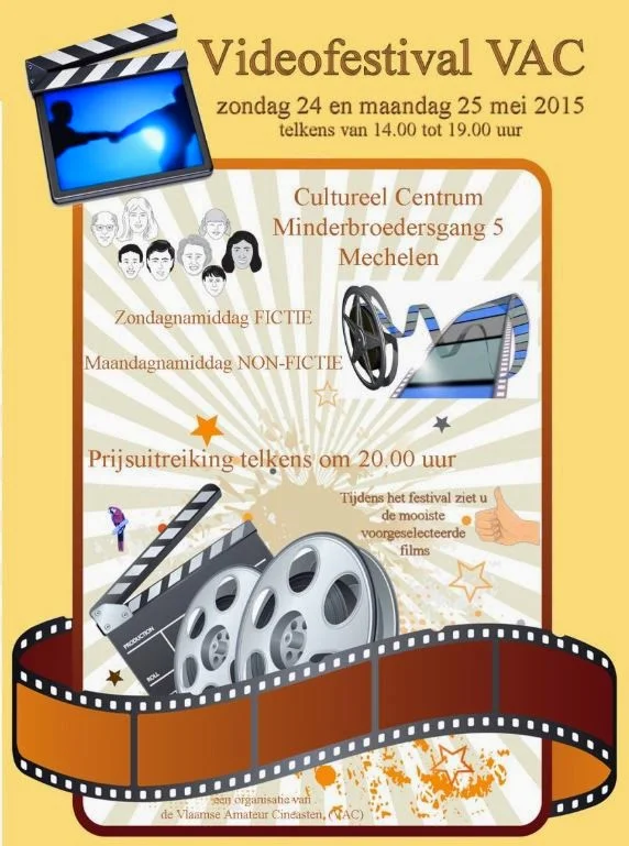 De inschrijvingen dienen te gebeuren ten laatste op 3 april 2015. Tevens moeten tegen 3 april 2015 de deelnemende film bezorgd worden aan VAC filmfestival 2015 ,